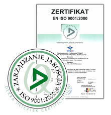 Posiadamy ceryfikat jakości ISO 9001:2000
